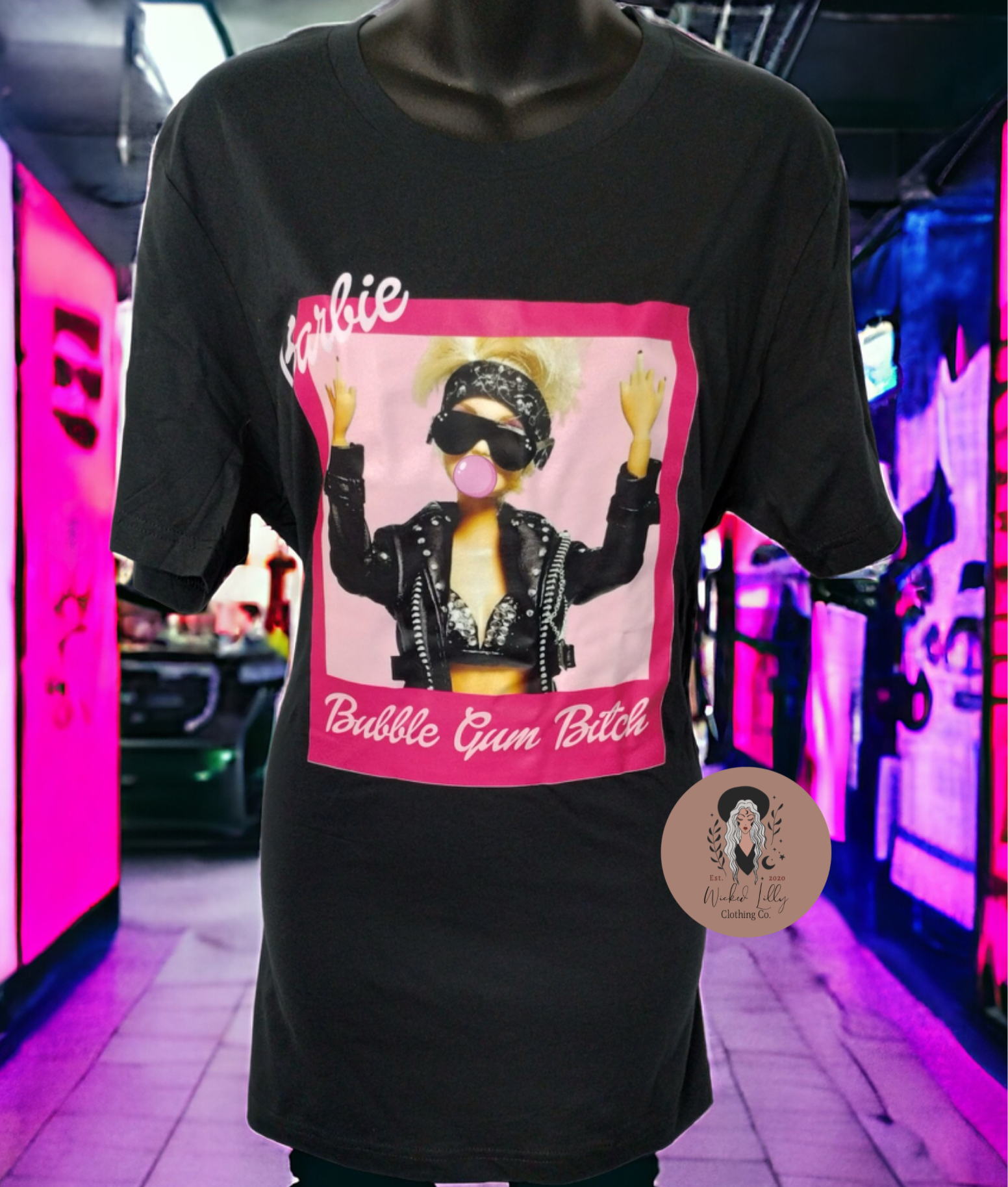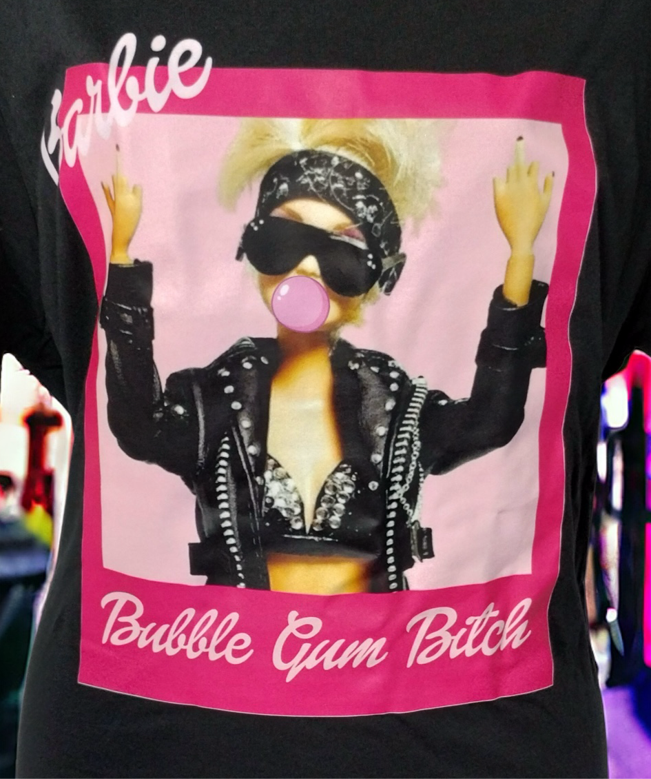 Unleash your inner badass with the Bubblegum Bitch t-shirt. This Barbie type top is perfect for those who aren't afraid to break the mold (and a few hearts). Channel your inner rebel with this quirky and playful tee.We love Barbie but we love her alter ego better! 😍