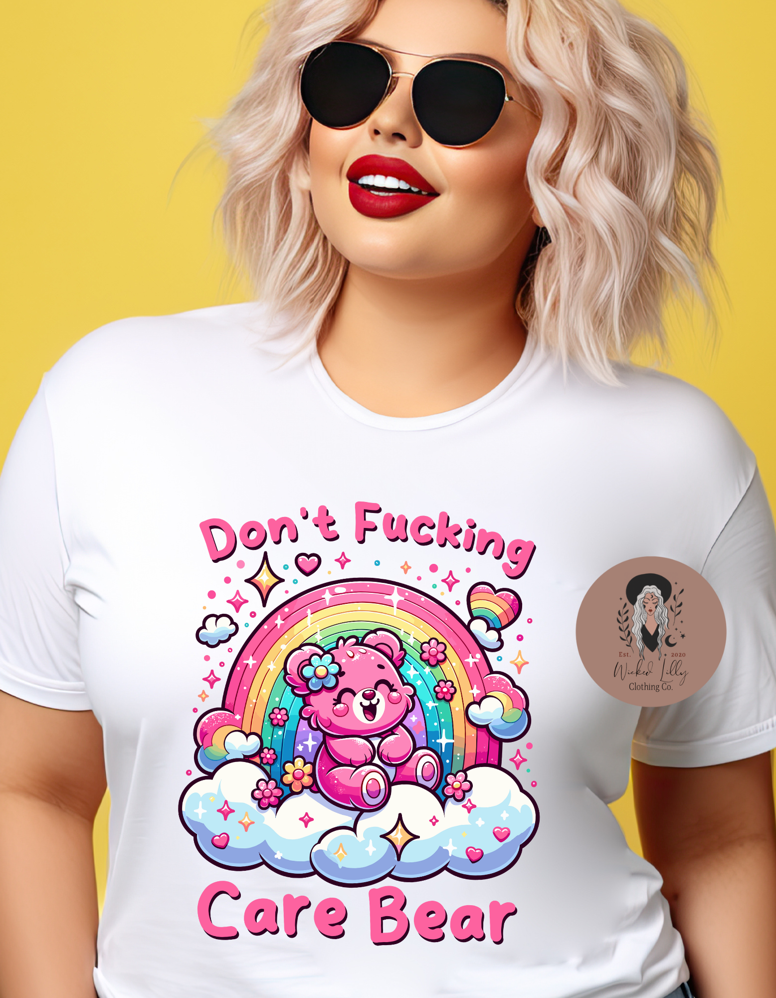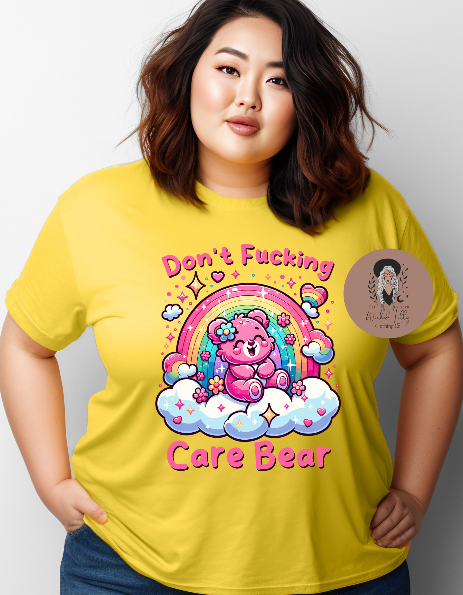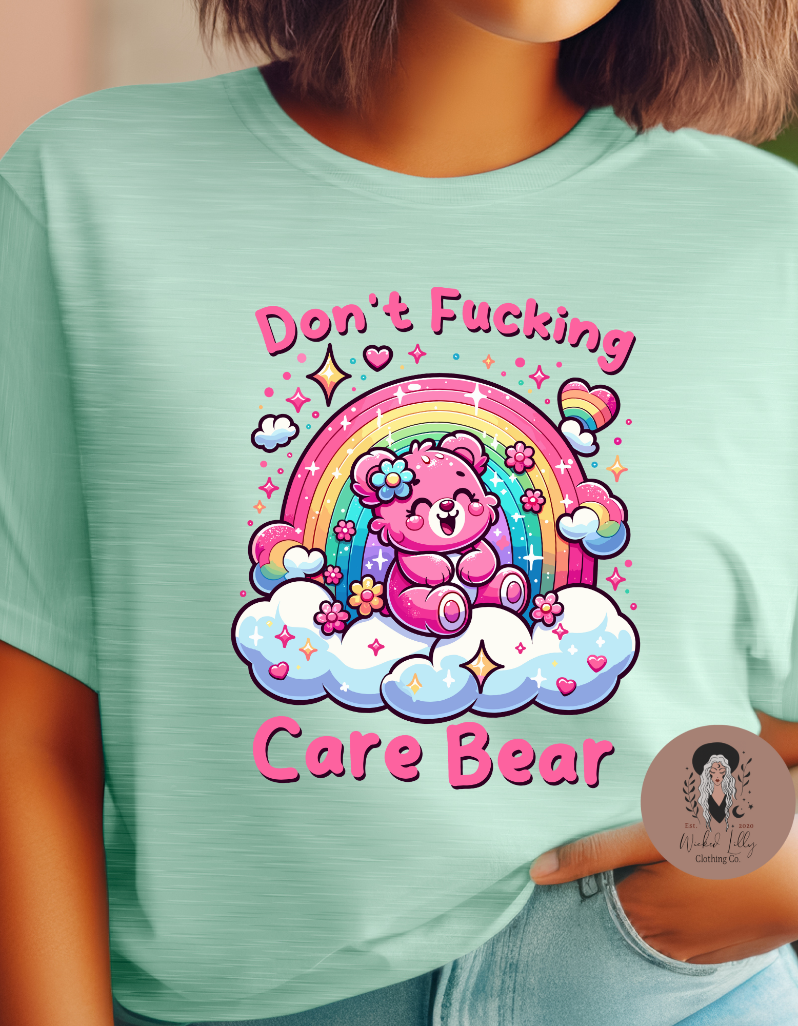 “Don’t Effing Care Bear” top - it’s like a rebellious take to those old-school Bears! This shirt is a sweet mix of throwback cool and modern sass, starring a bear who’s all about that carefree life. With its fun design and chill vibes, it’s the top pick for hanging out or making a fashion statement. Unleash your inner zen and flaunt your laid-back style with a wink to a childhood favorite. Whether you’re a retro cartoon buff or just fancy a good giggle, this tee is a wardrobe essential!